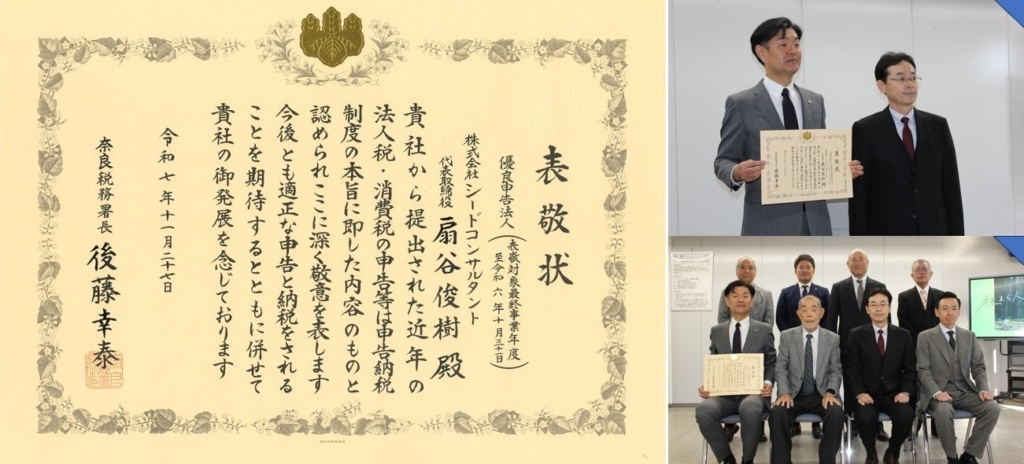 令和7年11月27日、奈良税務署より優良申告法人として表敬を受けました。